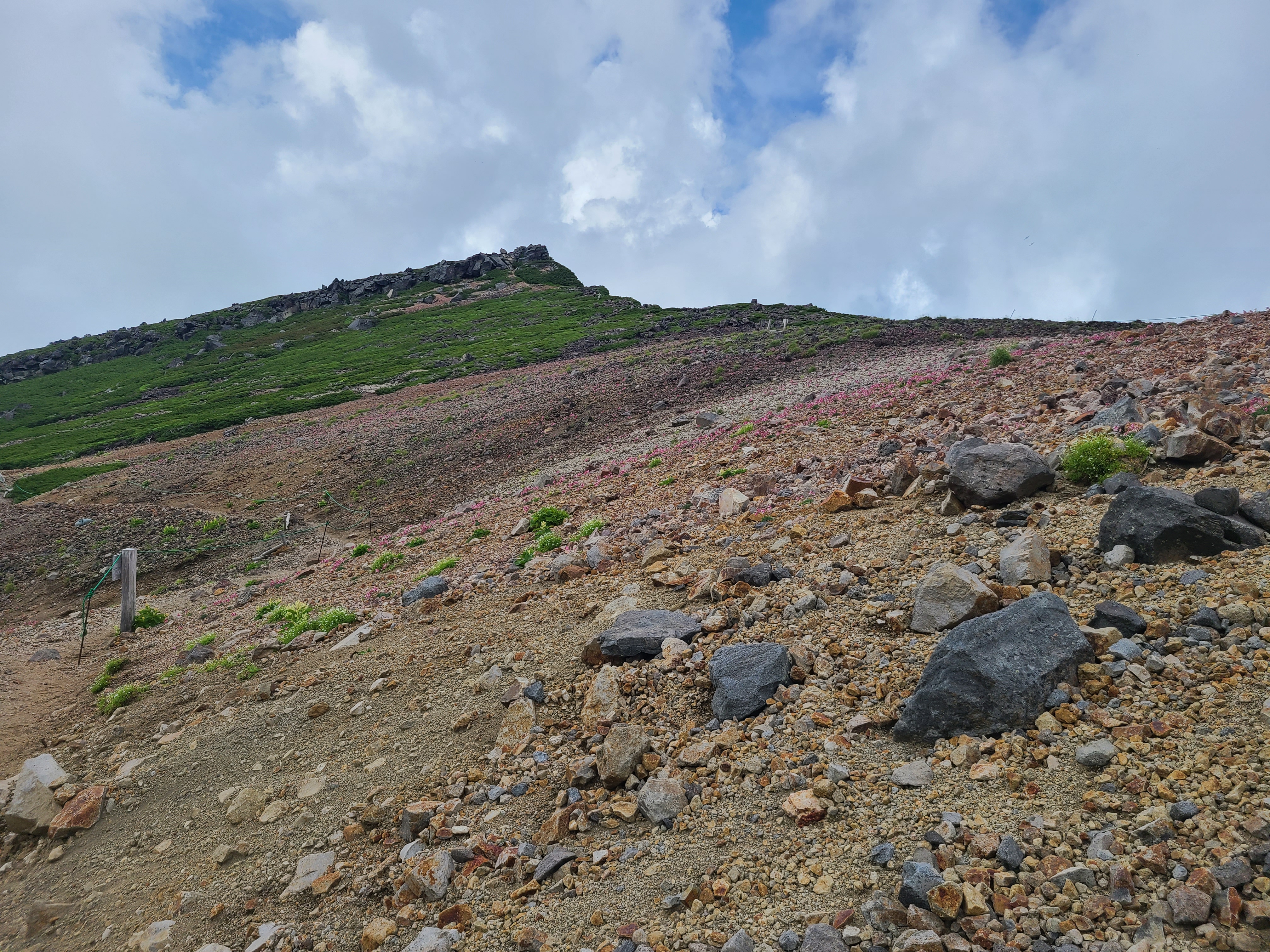 摩利支天山の山頂はあまり花はありませんでしたが、 五ノ池小屋は花真っ盛り! コマクサの群生が凄い! 写真では見づらいけど、ピンクは全部コマクサです。