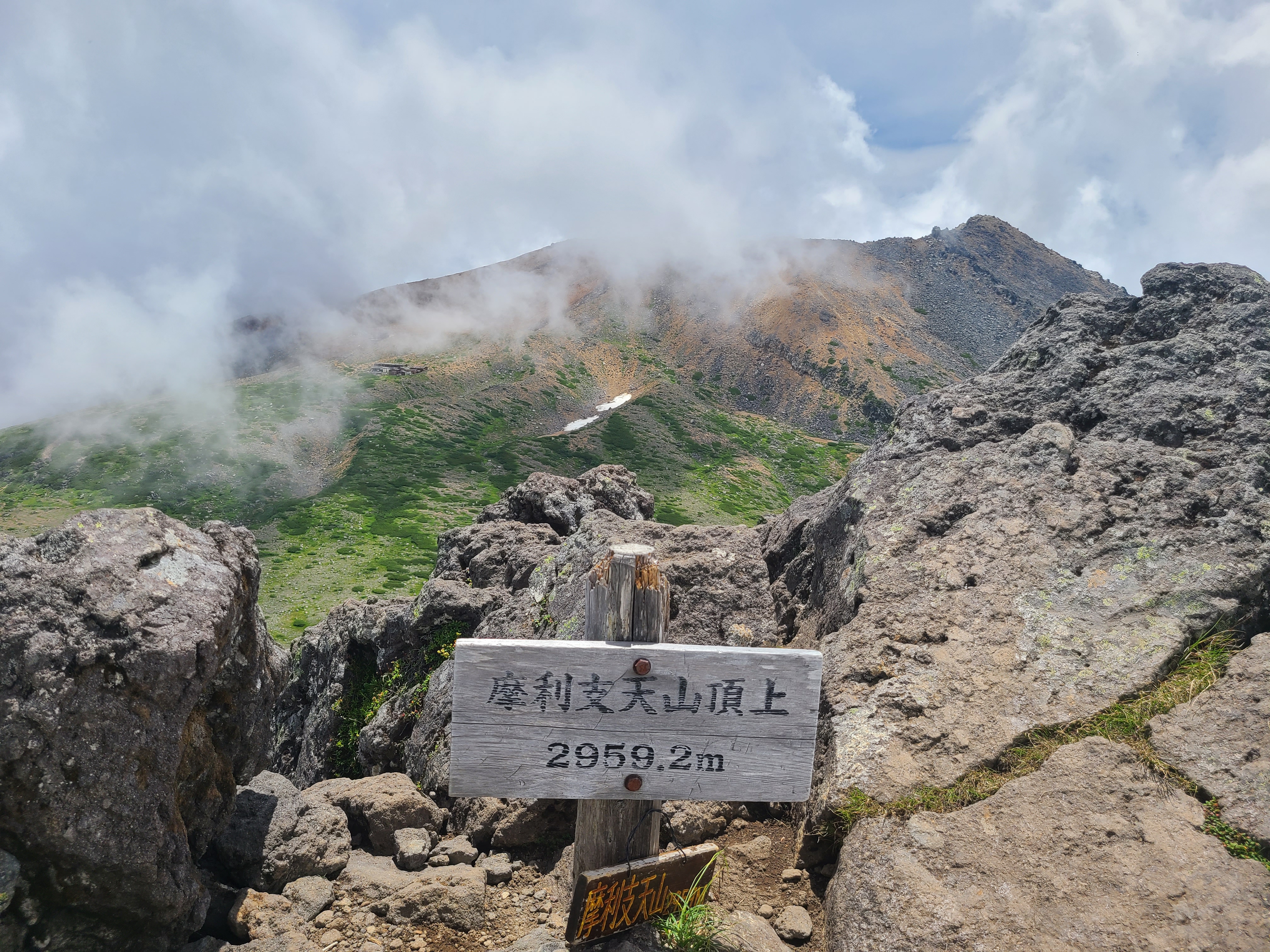 山頂からの景色が見えーん😭 ま、明日までにチャンスは何回でもある! とりあえずは、飯豊本山登頂!