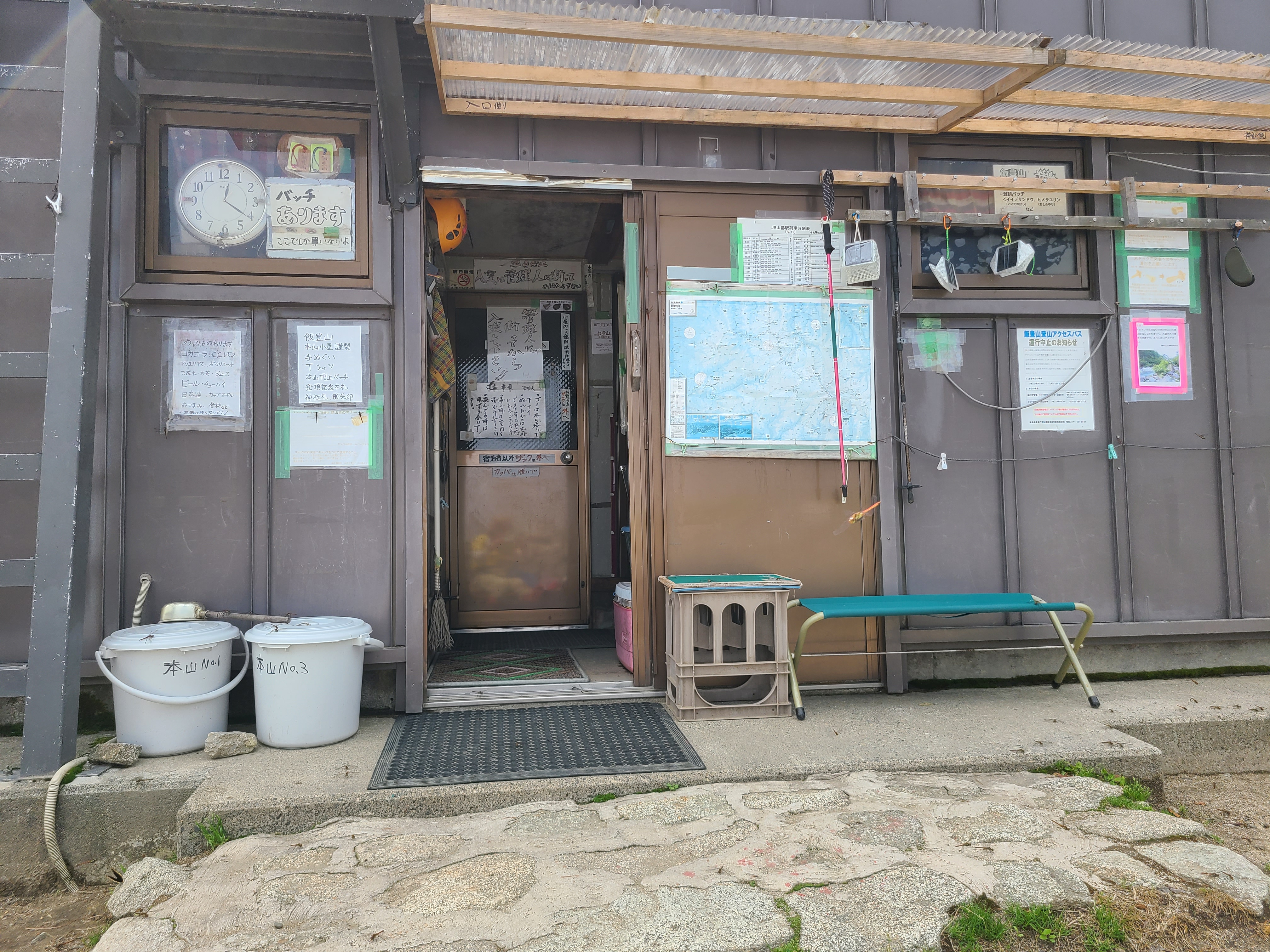 12時過ぎ、本山小屋に到着! お疲れ様でした、私! こんなに山奥なのに、各種ペットボトルや冷えたビールまであるのがスゴイ! 小屋番さんも、御沢から登ってくるそうで。 福島の喜多方市が運営してるから、福島の人が管理しなきゃいけないんだとか。 小屋番のお姉さん、これから御西小屋まで往復するらしい。大荷物(焼酎のボトル)ぶら下げて、大変だ。
